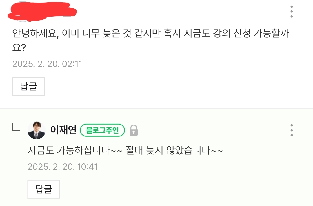 이미 너무 늦은 것 같지만 혹시 지금도 강의 신청 가능할까요?