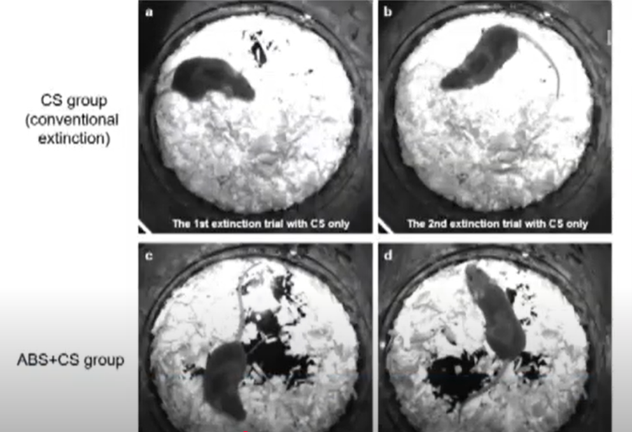 트라우마를 경험한 생쥐의 눈에 좌우로 반복하는 빛 자극을 주었을 때, 공포반응이 감소했습니다. 안구 운동 담당 뇌 영역 자극을 할 때 공포 억제 신경회로 활성화를 한다는 것을 밝혀낸 것입니다.