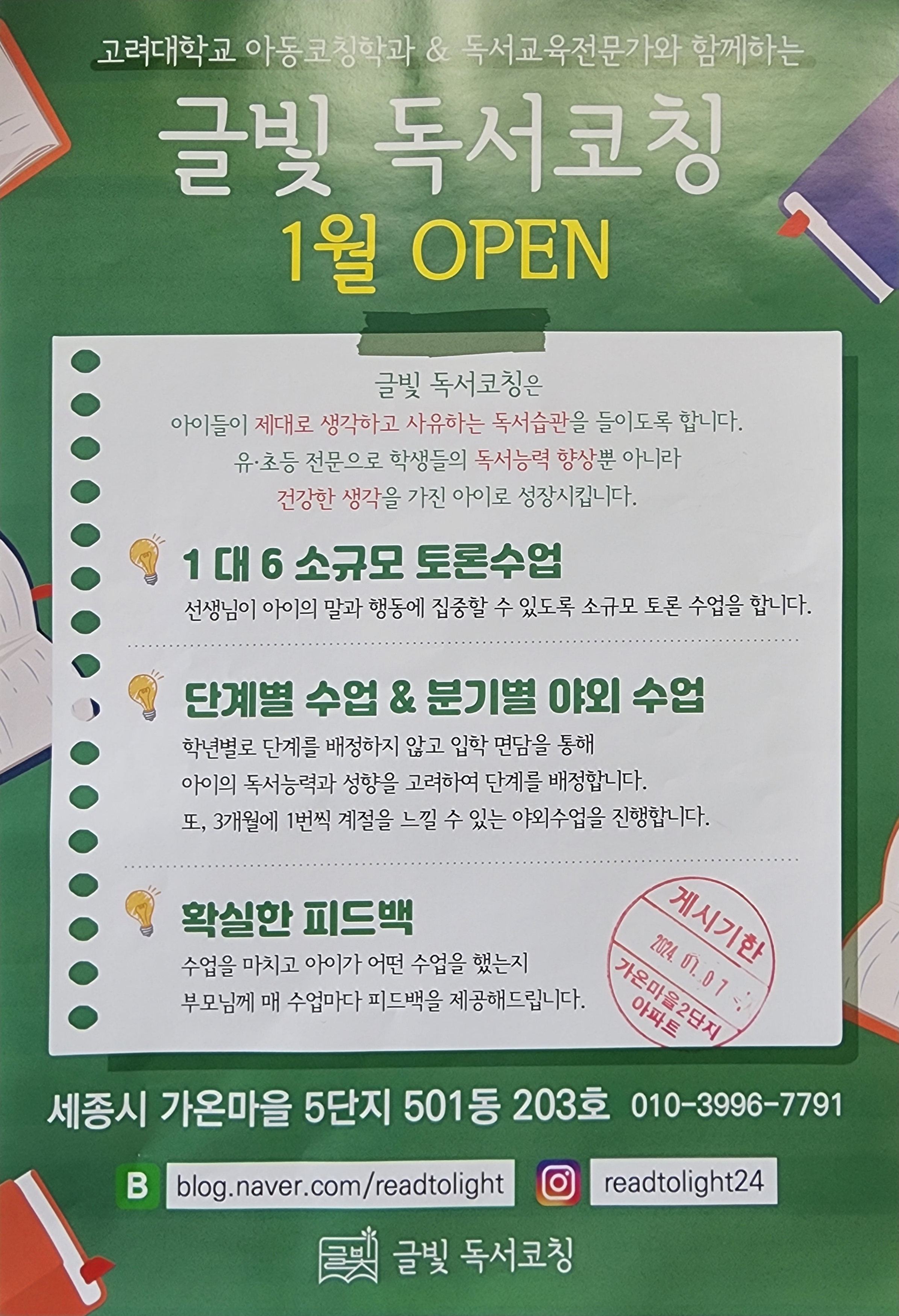 고려대학교 아동코칭학과 & 독서교육전문가와 함께하는 글꽃 독서코칭 1월 오픈!!
